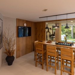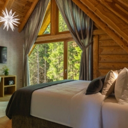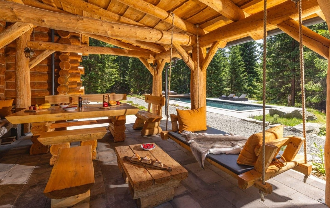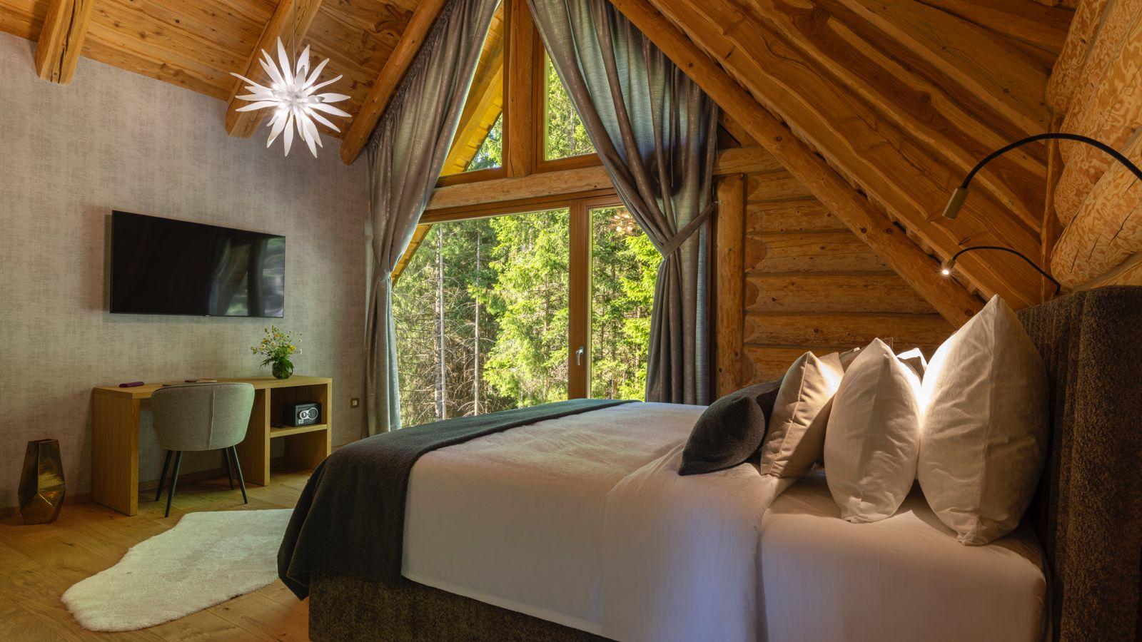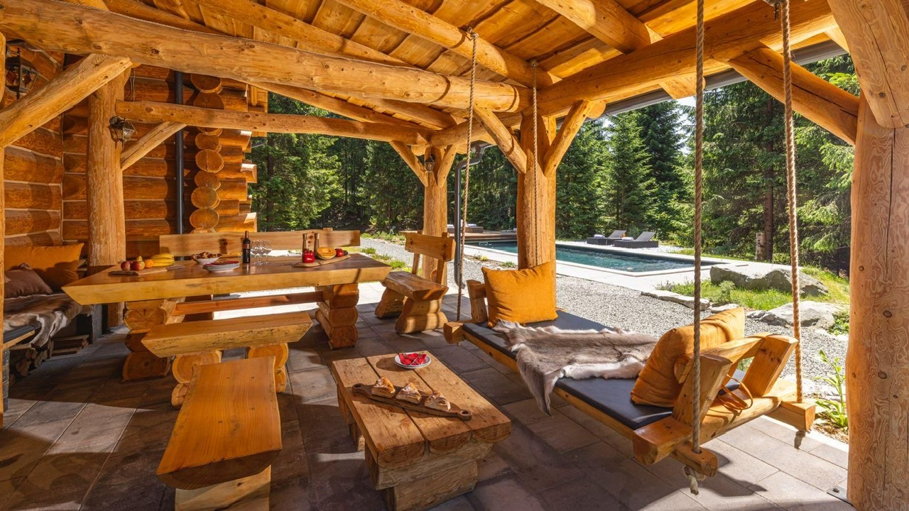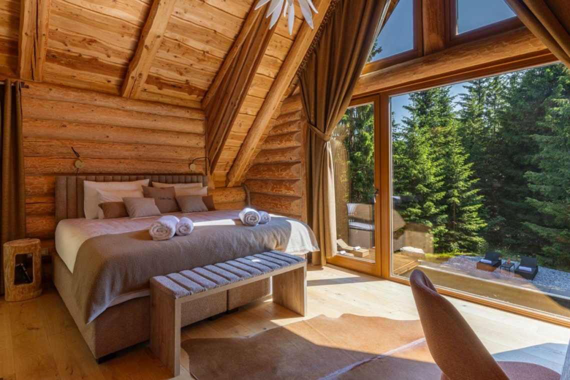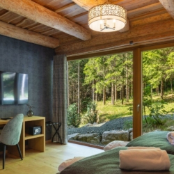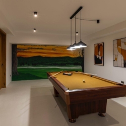 Guests can enjoy premium amenities such as a sauna, indoor jacuzzi, gym, billiards, wine cellar, PlayStation, piano, a spacious outdoor pool, and a private tennis court. Floor-to-ceiling glass surfaces provide stunning natural light and breathtaking views of the surrounding Gorski Kotar forest.