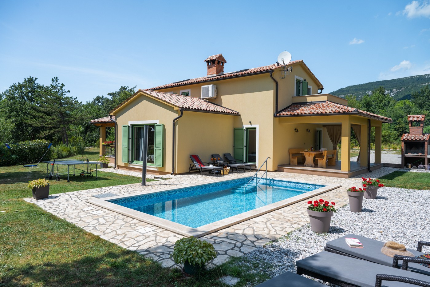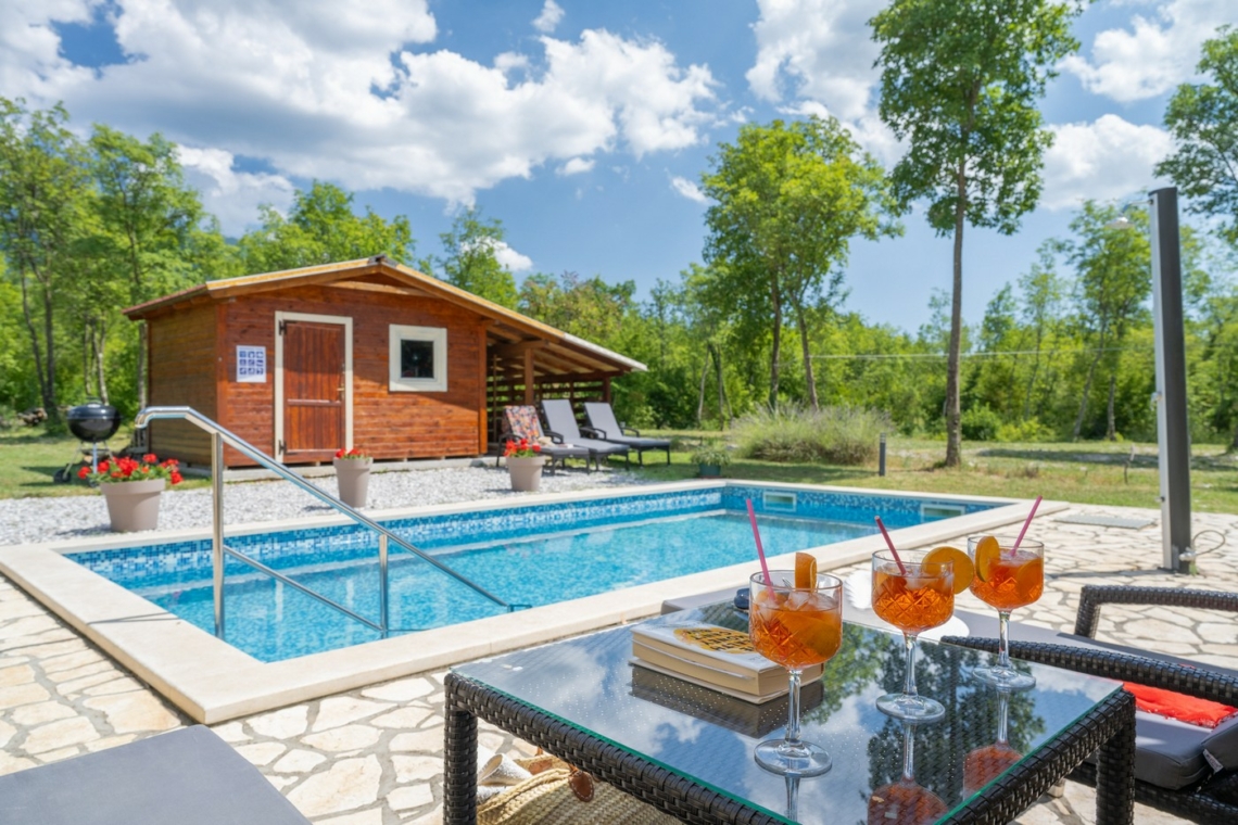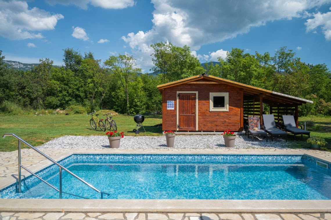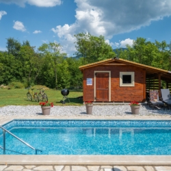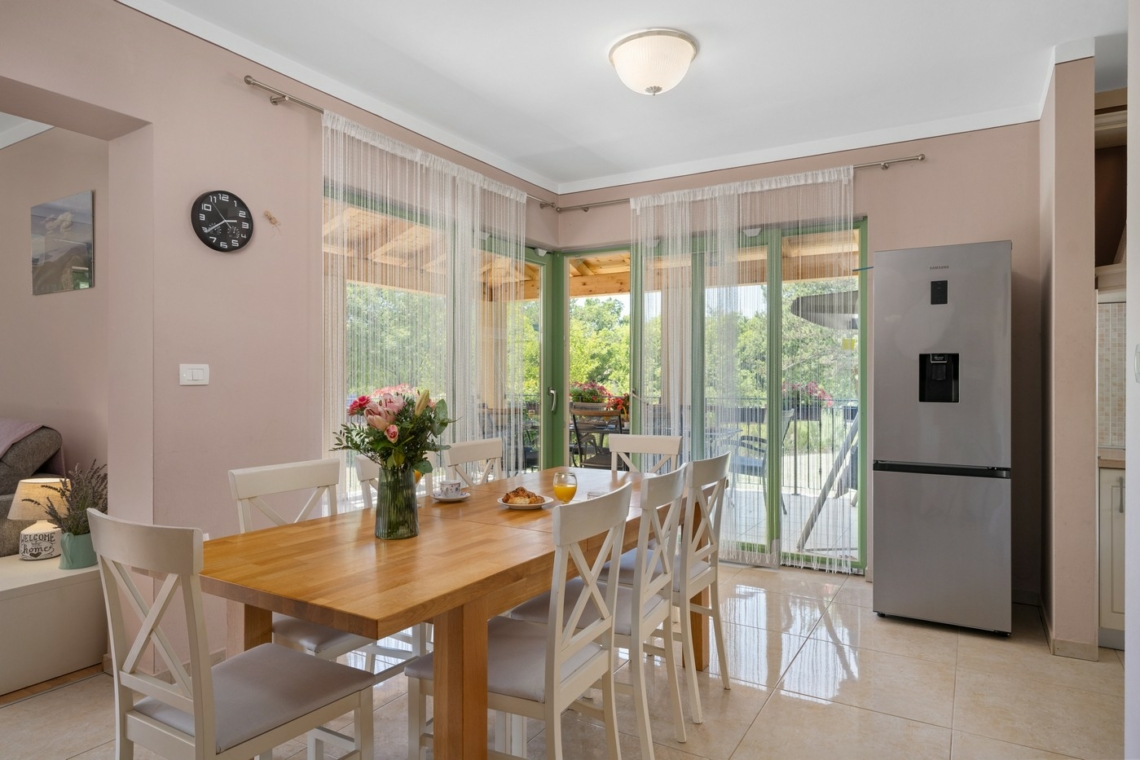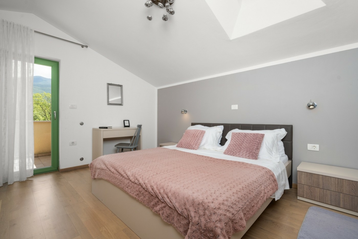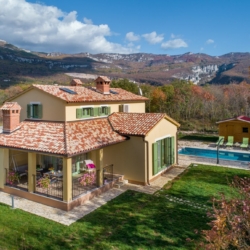 Nestled in the peaceful village of Vranje (Istria), right on the edge of Učka Nature Park, this spacious 240 m² villa set on a lush 5,000 m² estate offers the perfect balance between nature and modern living — ideal for all four seasons.