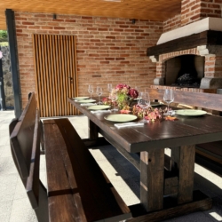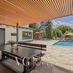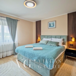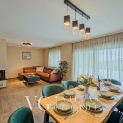 The interior spreads across 203 m², offering a warm and elegant atmosphere. The air-conditioned living room is equipped with a Smart TV, large sofa, and a stylish fireplace. The fully equipped kitchen, along with the dining area, provides everything needed for a pleasant stay. Thanks to underfloor and central heating, Villa Tia is comfortable year-round.