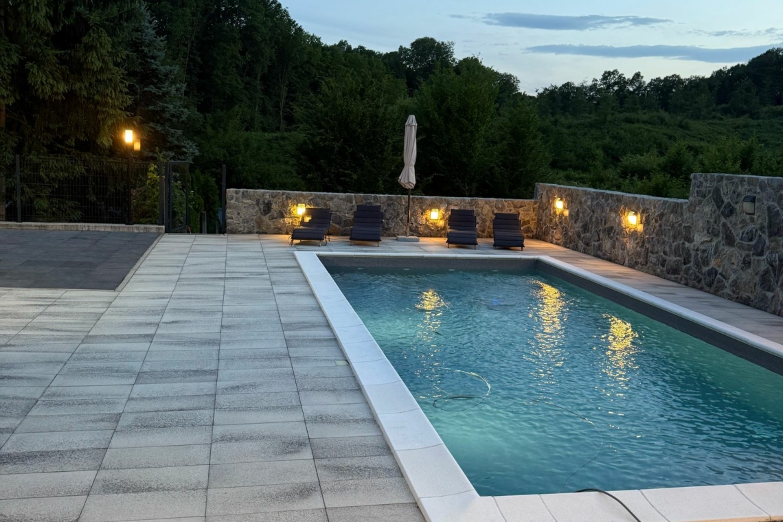 Located in a peaceful suburb of Karlovac, Villa Tia is a spacious and modern holiday home featuring a private outdoor pool and an indoor spa area. With 4 bedrooms and 4 bathrooms, the villa comfortably accommodates up to 8 guests, making it a perfect choice for families or groups of friends looking for comfort and privacy.