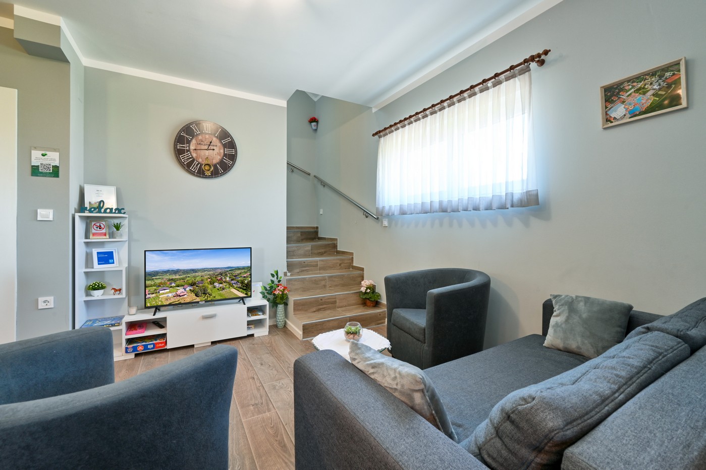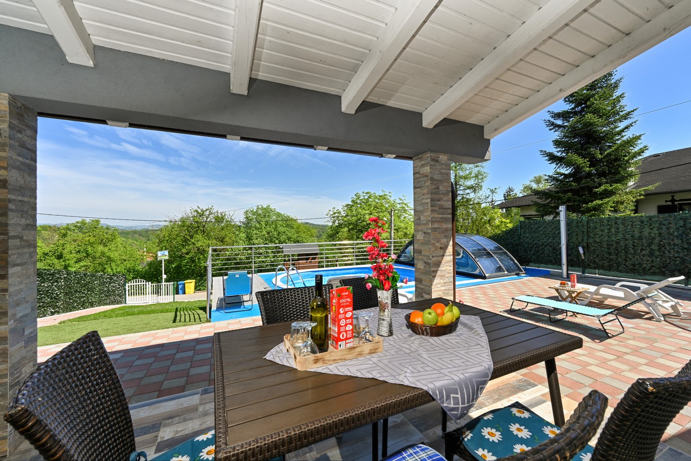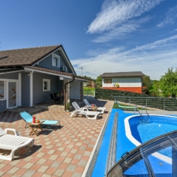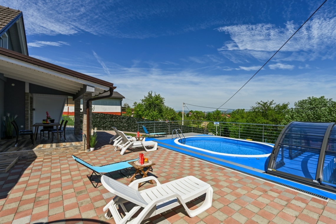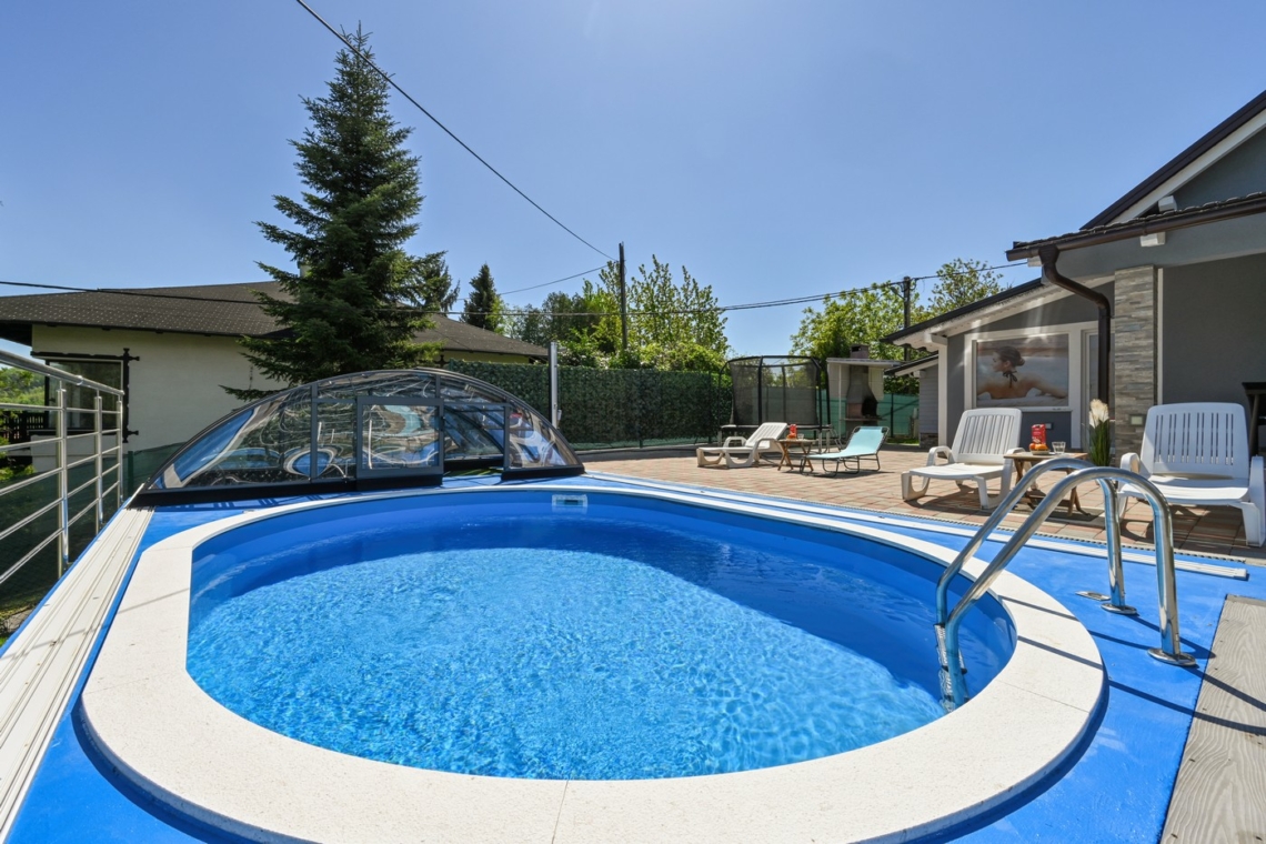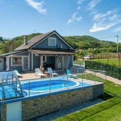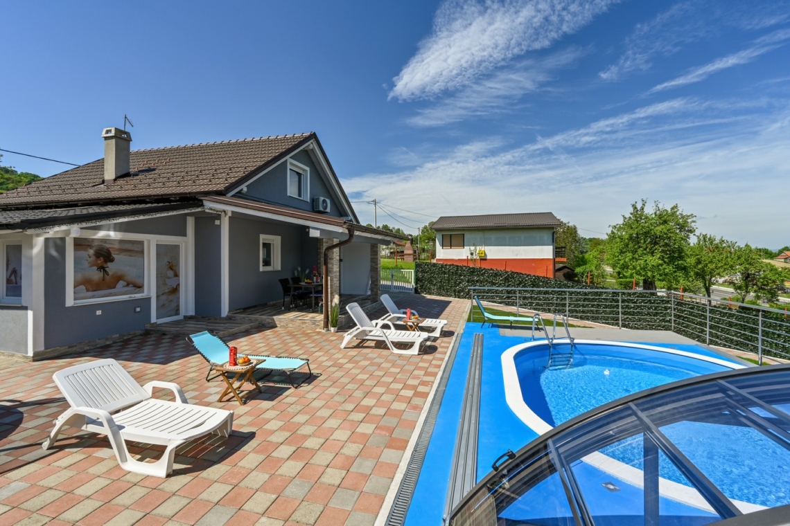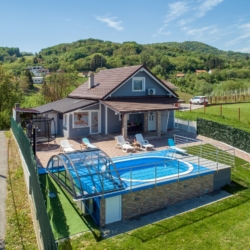 Cvetkova hiža a s Jaccuzijem je predivna kuća za odmor za obiteljski odmor i opuštanje koja nudi potpuni bijeg od užurbanog života, pružajući prostor za uživanje.Kuća je opremljena svim sadržajima koji su vam potrebni za savršen odmor. Cvetkova hiža je idealna je za odmor obitelji s djecom, ali i sve one kojima je potrebno opuštanje i relaksacija,Kuća je kompletno u ljetnim danima klimatizirana, a zimskim danima grijanje na plinUlazak u kuću je digitalni , nema ključaZa potpuni užitak, Jacuzzi u grijanom prostoru omogućava opuštanje u hladnijim danima.,tu je grijanji bazen sa kupolom u kojem možete uživati od 01.04 do 31.10 , i duže ovisno o vremenuKuća se nalazi 900 m od Termi Tuhelj.