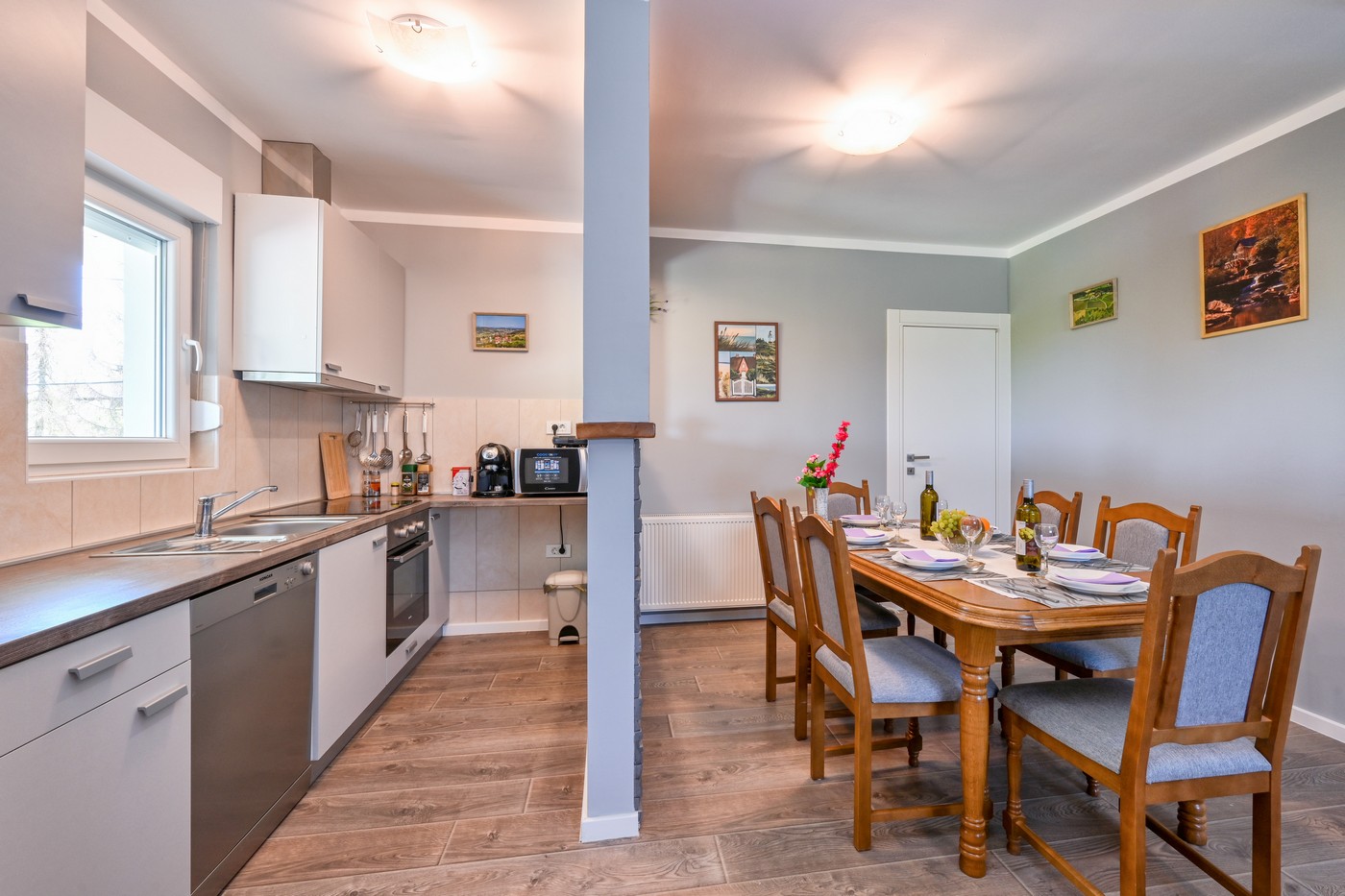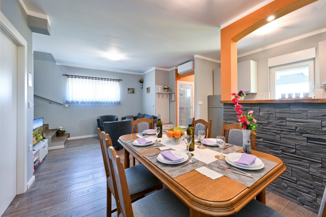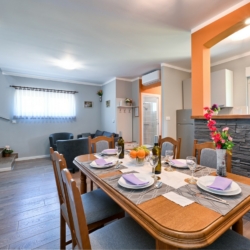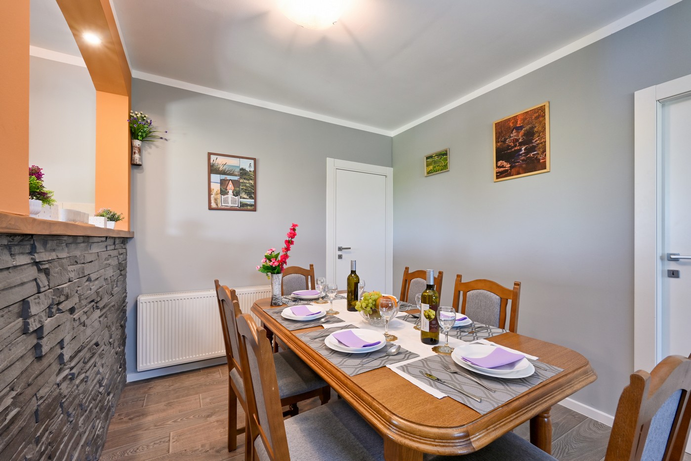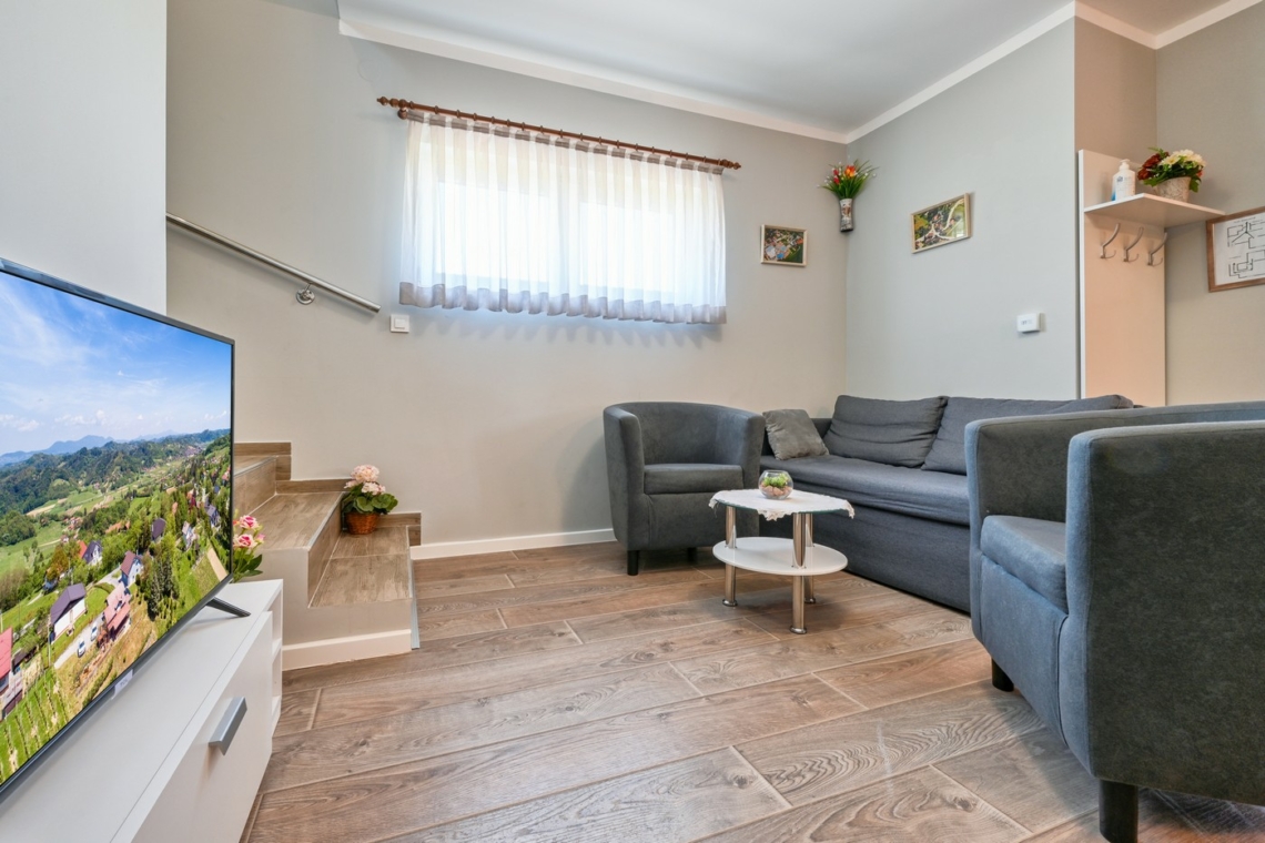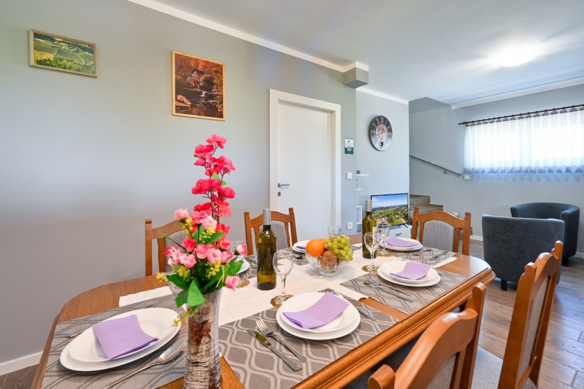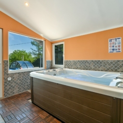 Cvetkova hiža a s Jaccuzijem je predivna kuća za odmor za obiteljski odmor i opuštanje koja nudi potpuni bijeg od užurbanog života, pružajući prostor za uživanje.Kuća je opremljena svim sadržajima koji su vam potrebni za savršen odmor. Cvetkova hiža je idealna je za odmor obitelji s djecom, ali i sve one kojima je potrebno opuštanje i relaksacija,Kuća je kompletno u ljetnim danima klimatizirana, a zimskim danima grijanje na plinUlazak u kuću je digitalni , nema ključaZa potpuni užitak, Jacuzzi u grijanom prostoru omogućava opuštanje u hladnijim danima.,tu je grijanji bazen sa kupolom u kojem možete uživati od 01.04 do 31.10 , i duže ovisno o vremenuKuća se nalazi 900 m od Termi Tuhelj.