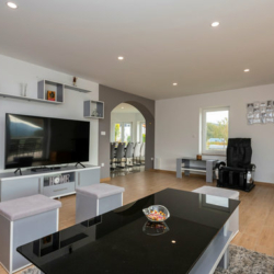 Prostrani dnevni boravak povezan je s kuhinjom i blagovaonicom u otvorenom konceptu, savršen za zajedničke trenutke.