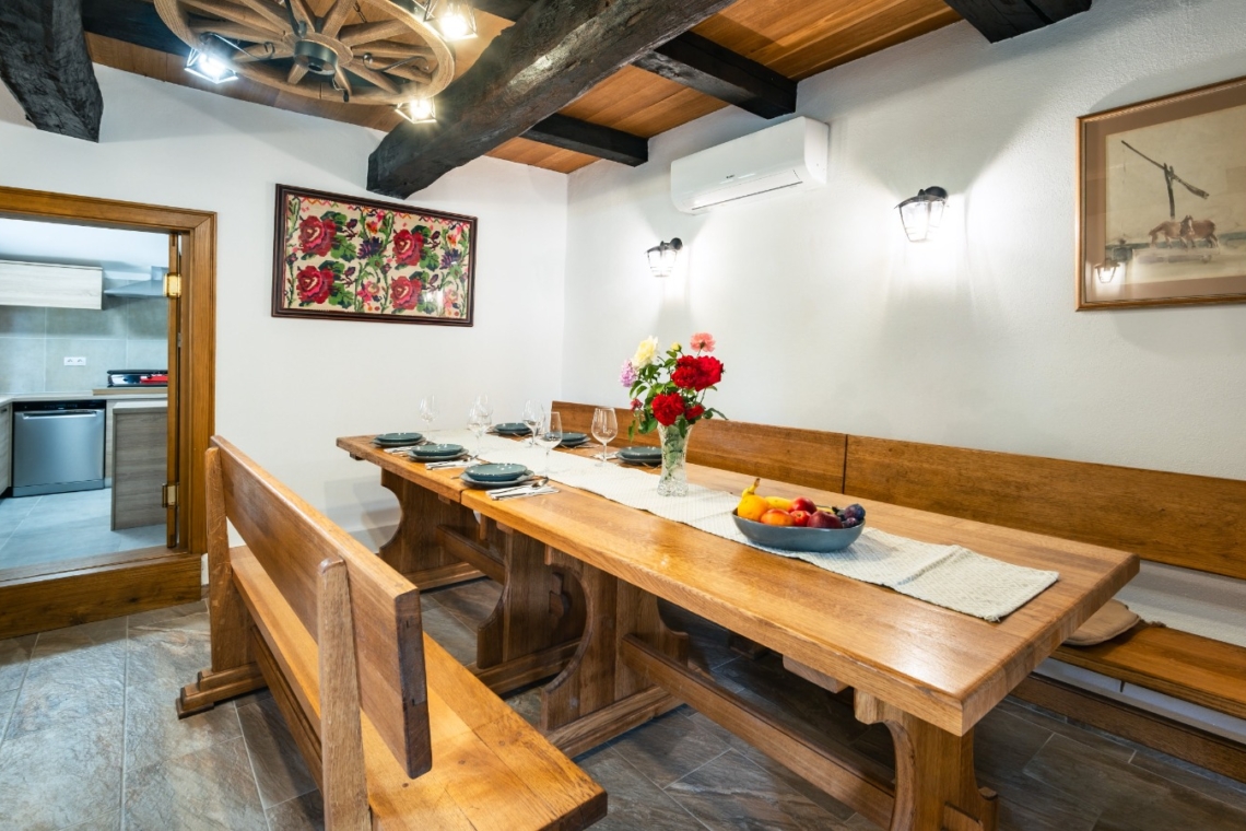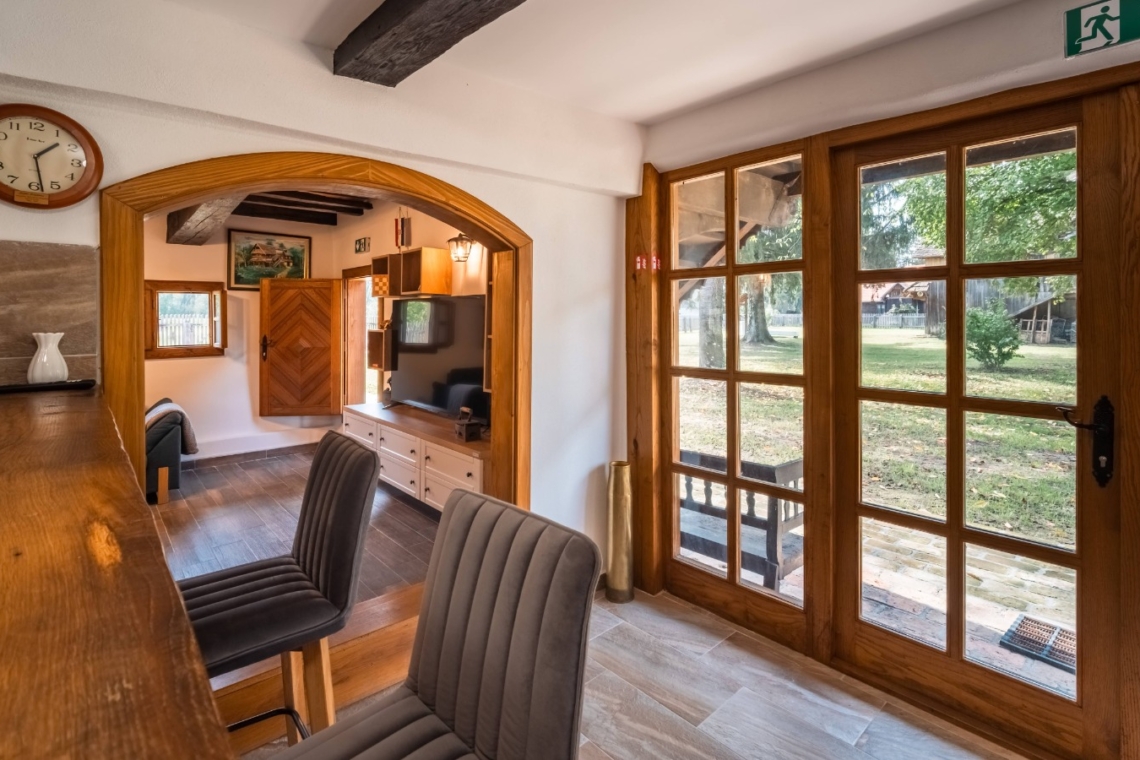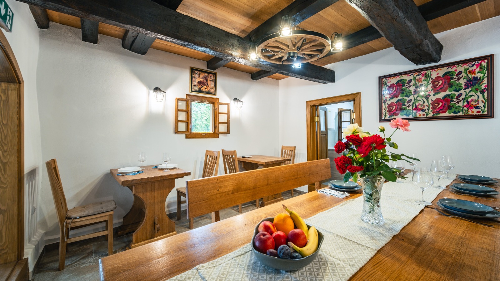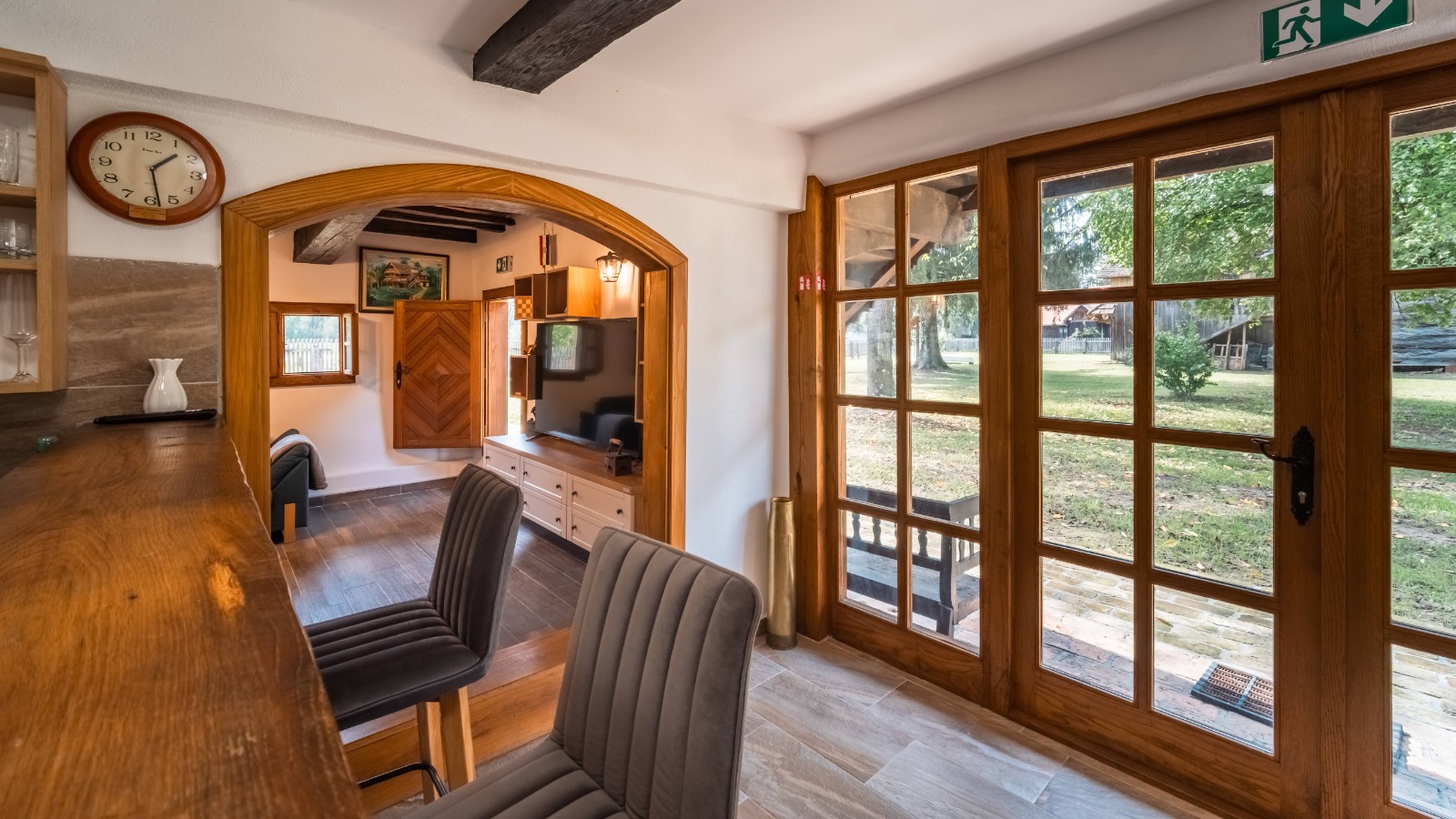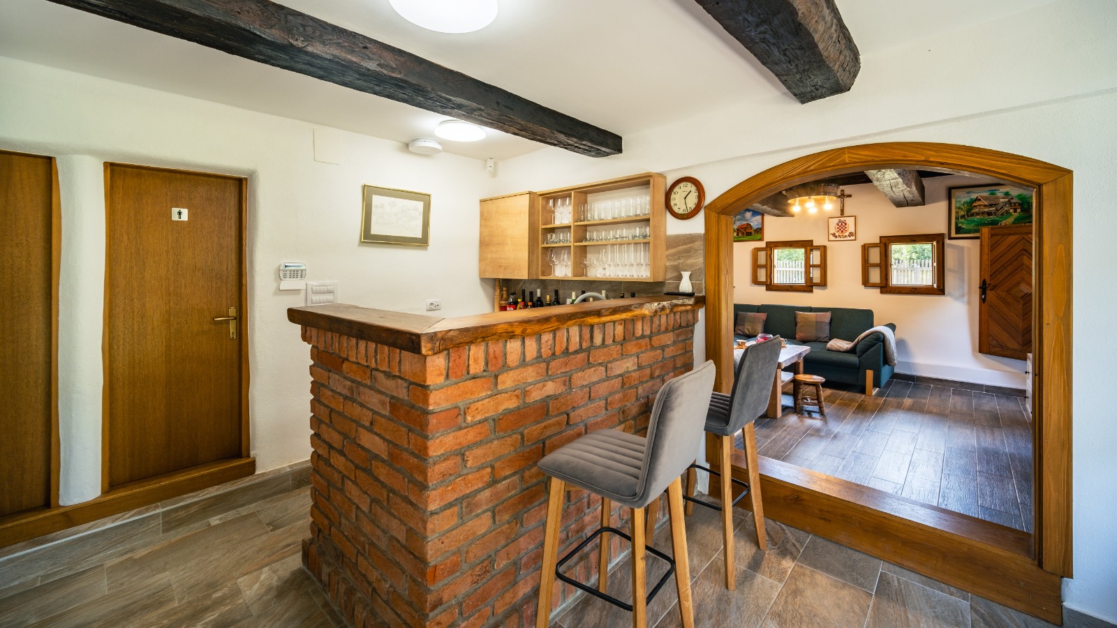 tijekom toplih dana. Unutarnji prostor nudi šank, veliki blagovaonski stol, prostrani dnevni