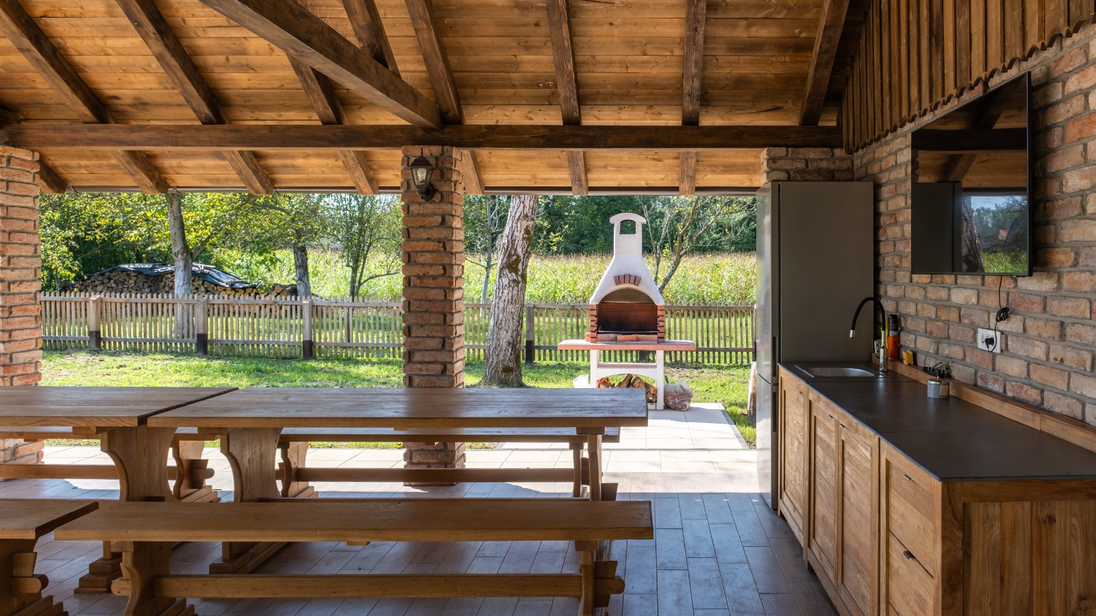 Uživajte u vrtnom paviljonu s velikim stolom i potpuno opremljenom kuhinjom, idealnom
