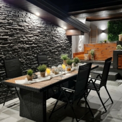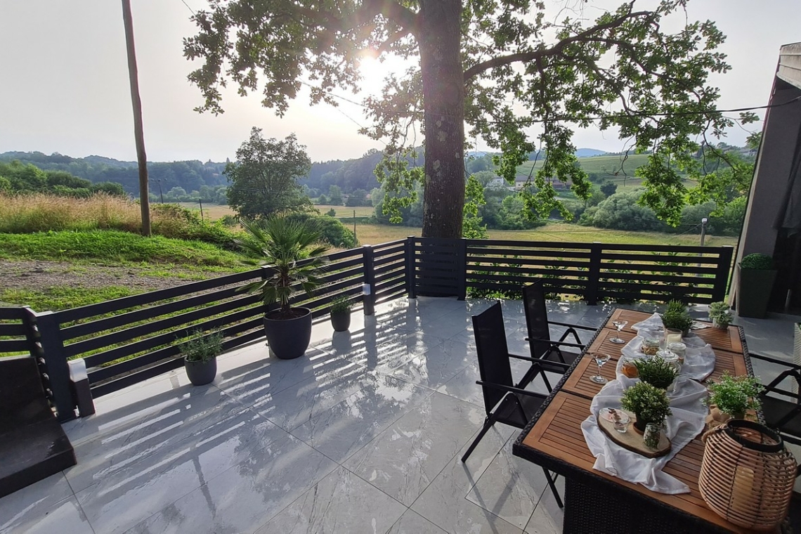 Posebnost ove kuće je terasa s prekrasnim pogledom na rijeku Dobru i okolne šume – idealno mjesto za jutarnju kavu ili večernje opuštanje uz zalazak sunca. Dvorište nudi prostor za odmor i igru, a na raspolaganju je i roštilj za pripremu ukusnih jela na otvorenom.