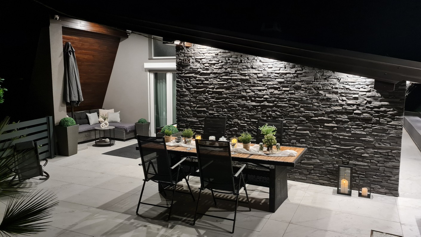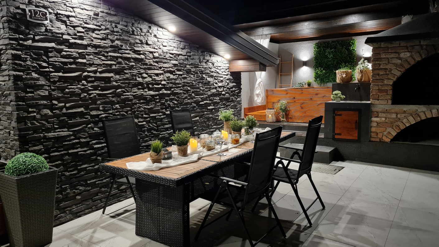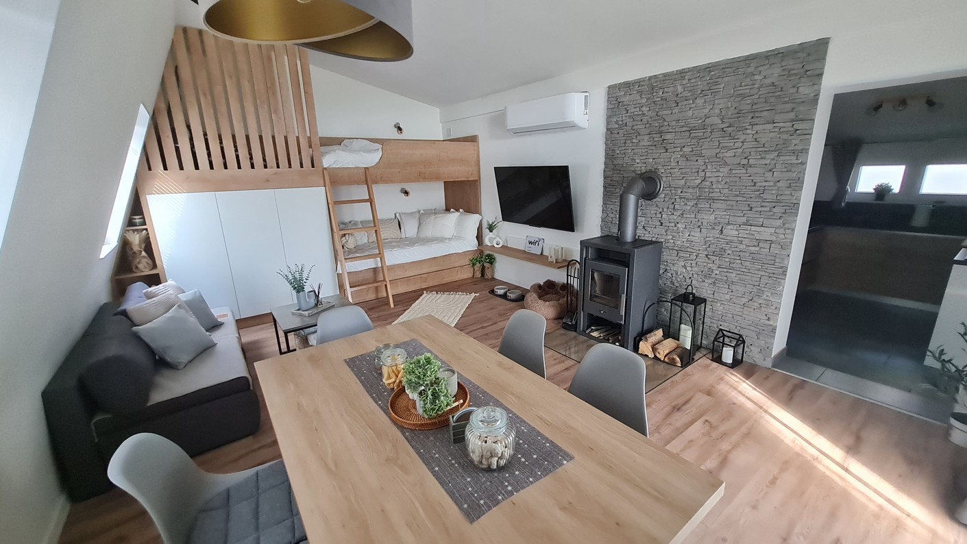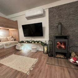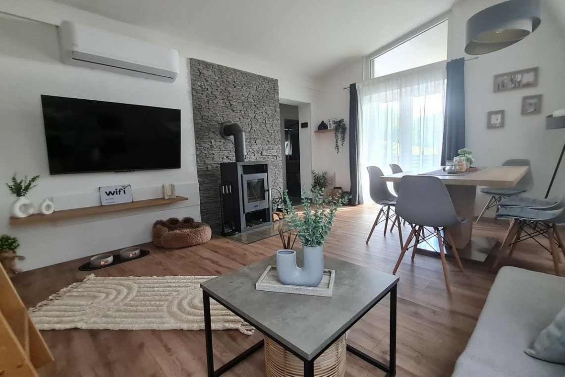 Poseban šarm daje kamin koji stvara toplu atmosferu i čini kuću savršenim utočištem i tijekom hladnijih mjeseci. Namještaj po mjeri i pažljivo odabrani detalji daju Vista Verde kući poseban karakter i dušu.