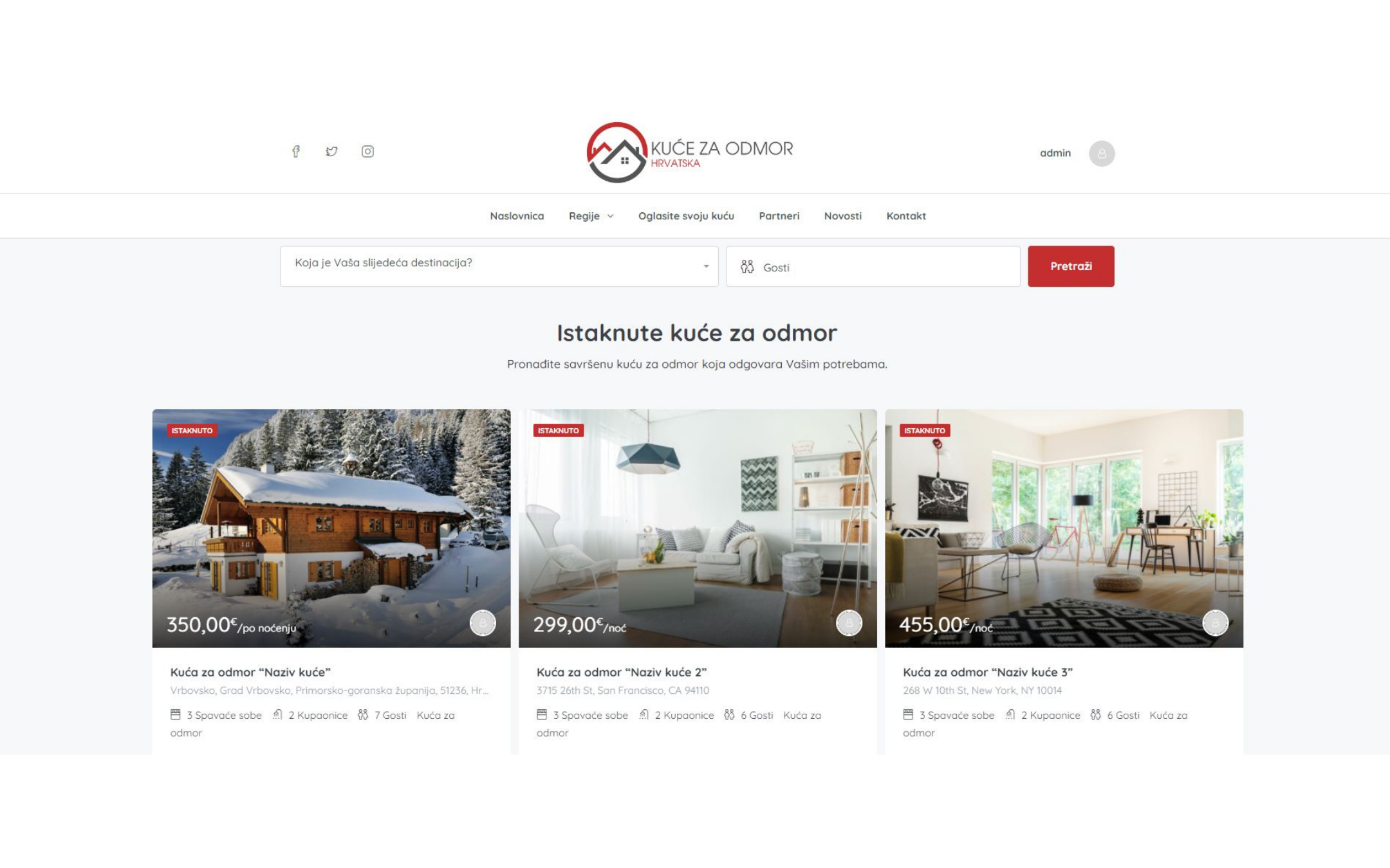 Slika 1. Prikaz početne stranice sa istaknutim kućama